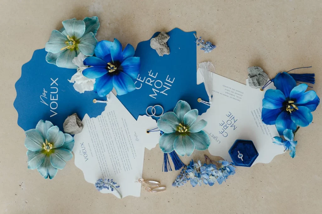 Mon accompagnement est unique. Il réunit trois compétences qui se nourrissent l’une l’autre : wedding design, art floral et graphisme/papeterie. Cette approche globale garantit une esthétique cohérente, des finitions soignées et une organisation fluide.