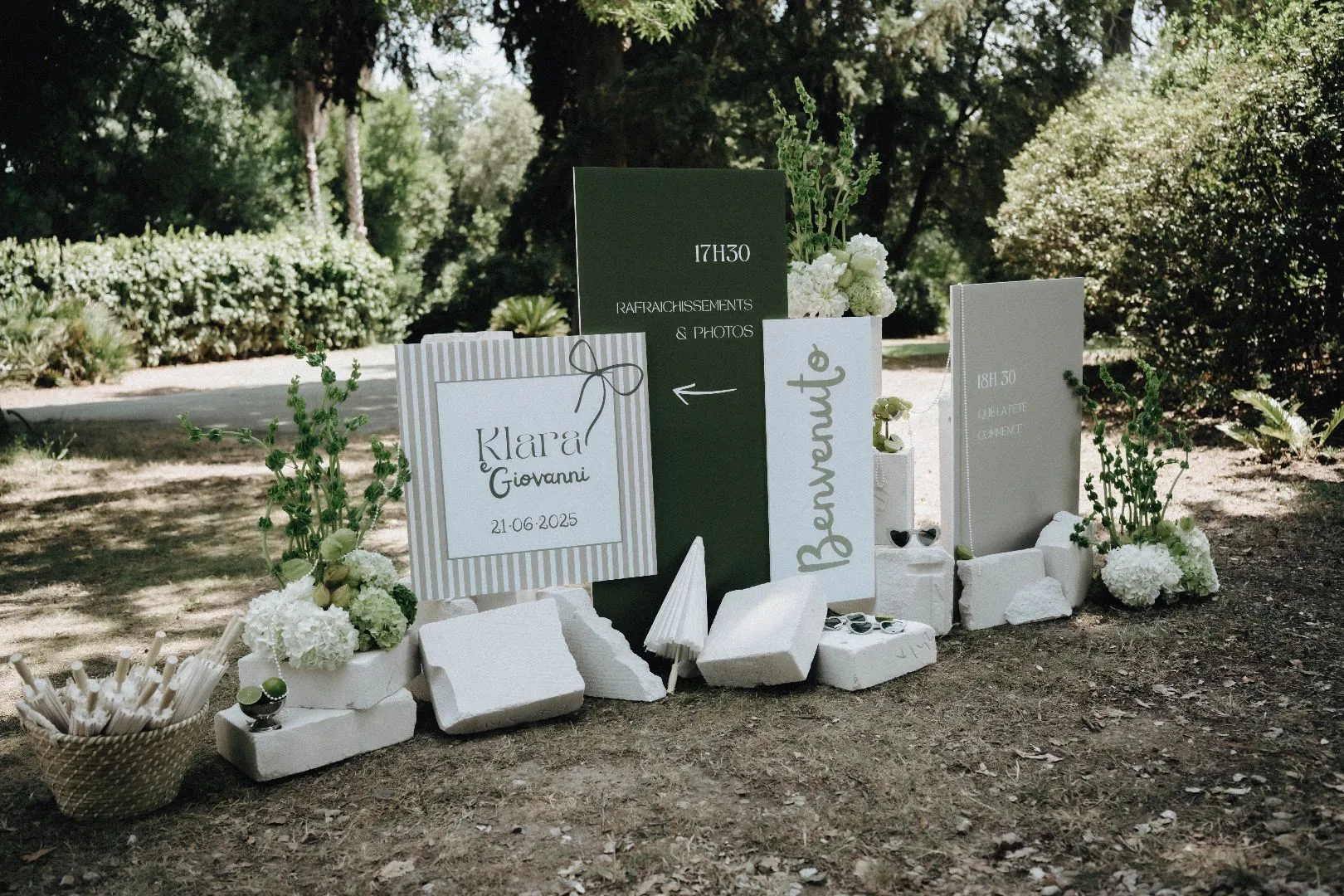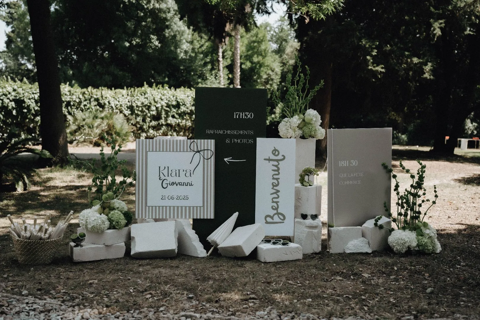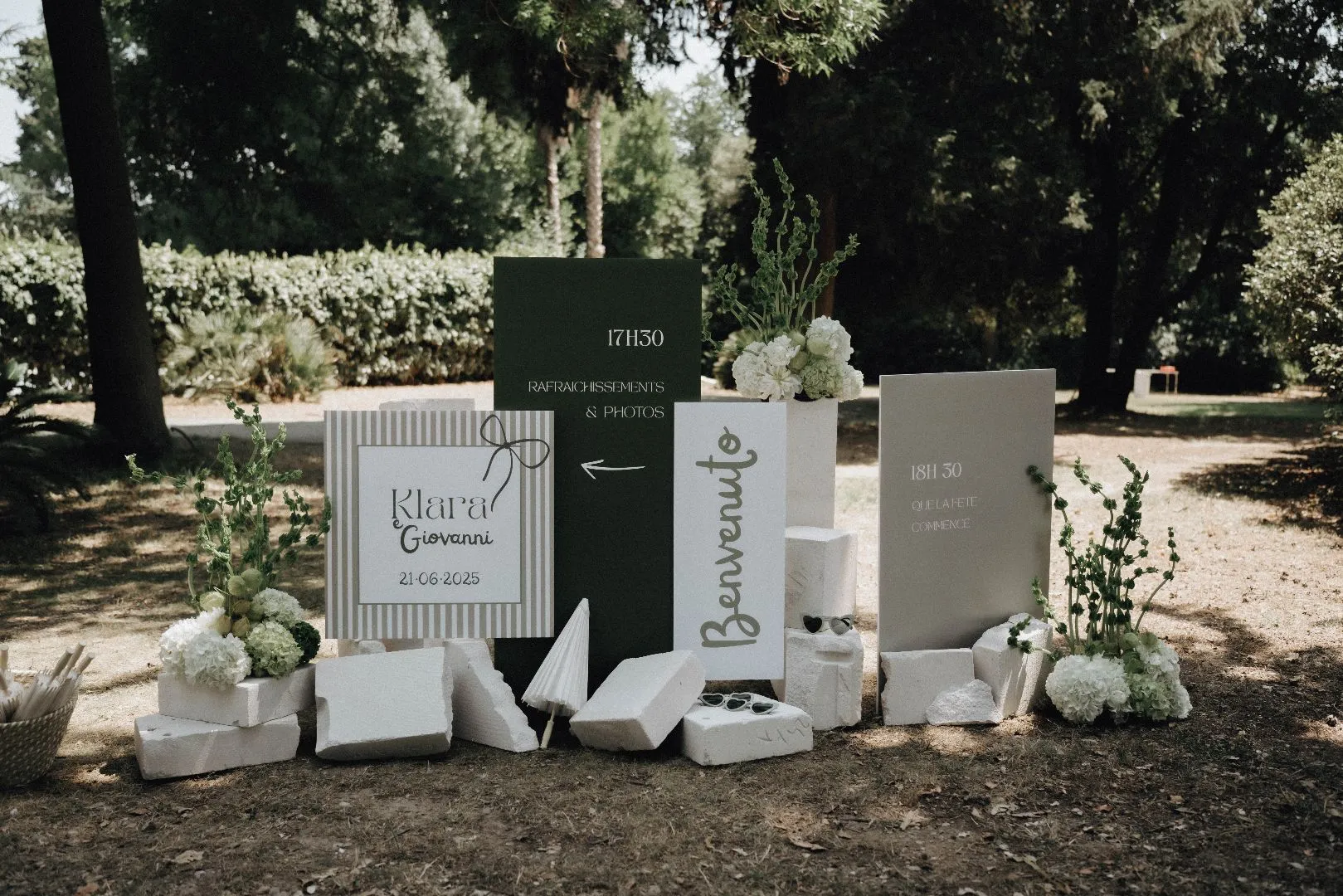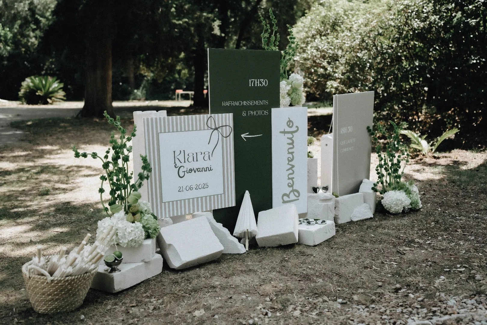 Klara et Giovanni m’ont choisi pour que les accompagne dans l’élaboration de leur scénographie de mariage. Ils souhaitaient un accompagnement esthétique global pour que je m’occupe de tout. Ils avaient besoin d’être guidés et de pouvoir se reposer sur moi le jour j. Ainsi , ils auraient l’occasion de pouvoir pleinement profiter de leur journée et de leurs invités.
