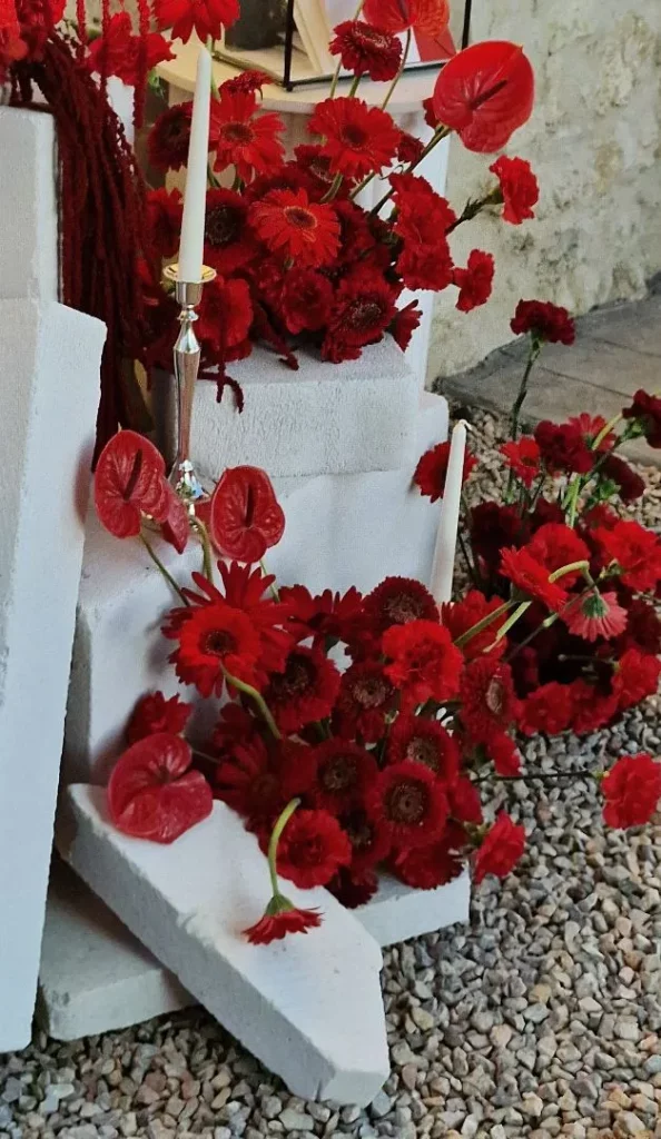Je privilégie une approche complète, car la cohérence du design repose sur l’union entre fleurs, scénographie et graphisme.
